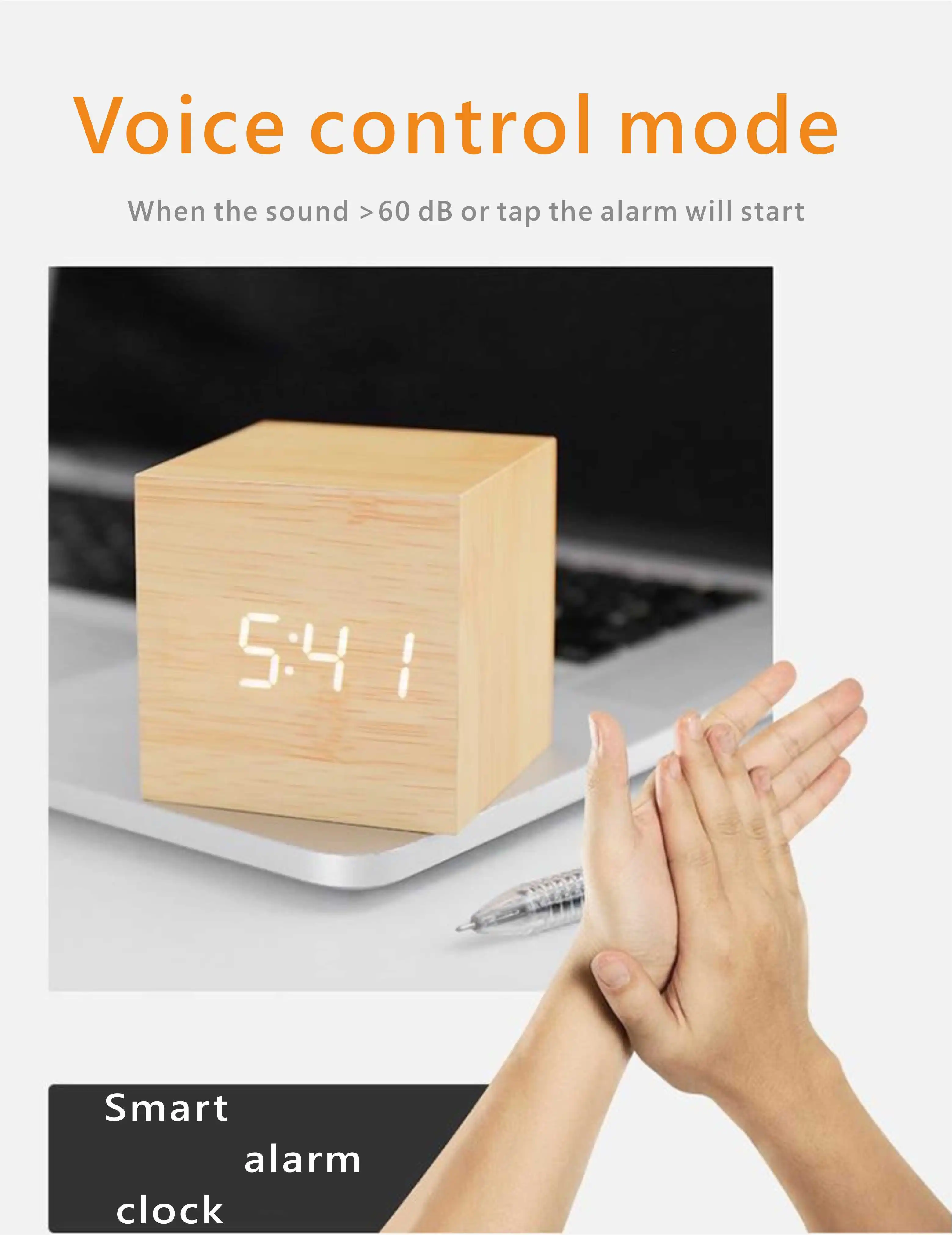 Многоцветные часы со звуковым управлением светодиодный настольный деревянный светодиодный Будильник цифровой будильник настольные часы термометр часы куб часы