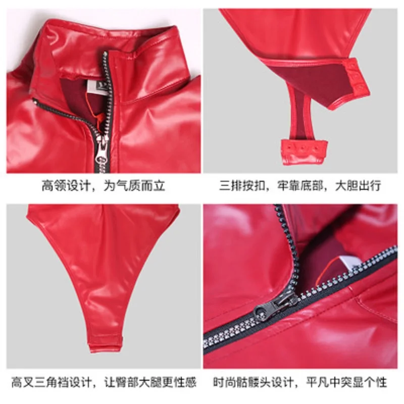 Боди из искусственной кожи с длинными рукавами, чулки до бедра, латексный костюм, стринги с высоким вырезом, бикини, купальник, сексуальный костюм для фитнеса, коррекция фигуры