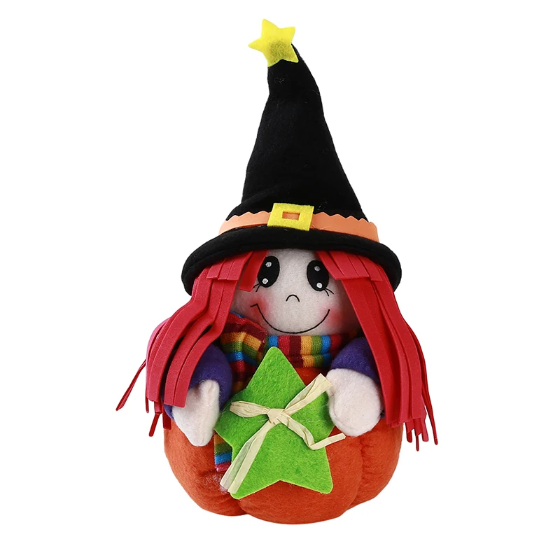 Broom/Ghost/Five-pointed Star Little Girl Halloween Pumpkin Doll Decoration Creative Plush Toy Ornament For Halloween Decorative