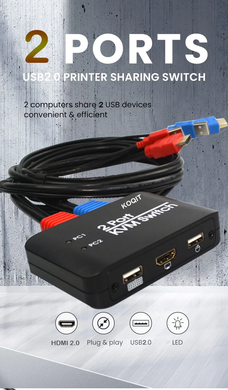 Подходит для 2 ПК для обмена клавиатурой, мышью, принтером и т. д. Идеально подходит для дома, офиса, компьютерной комнаты и более доступных сцен.