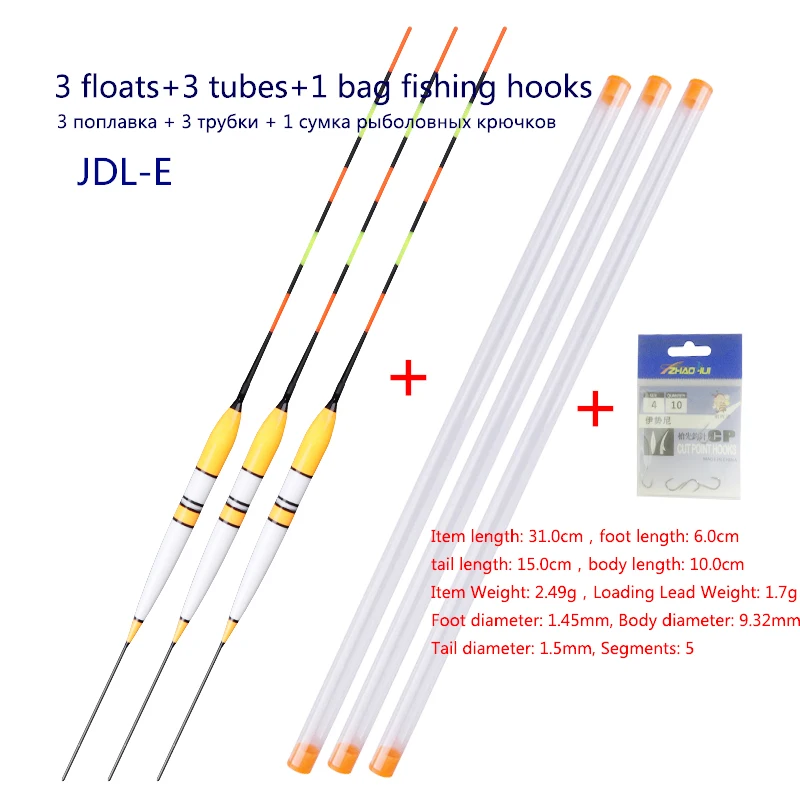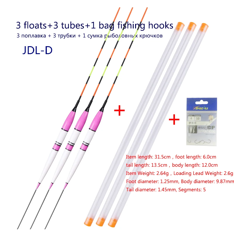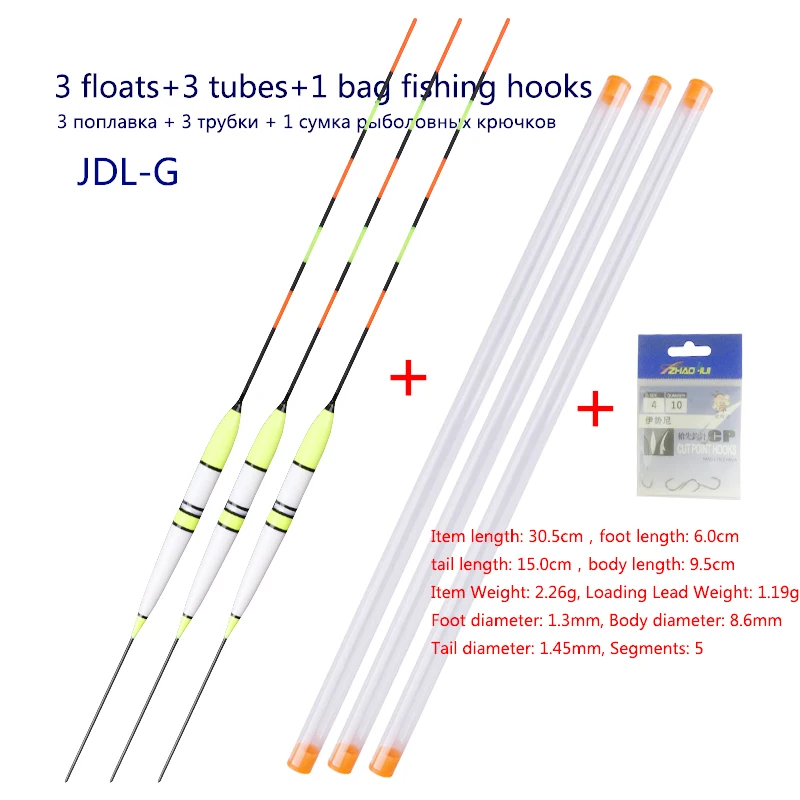 3 рыболовных поплавка без батареи + 3 поплавковых трубки + 1 мешок рыболовных крючков