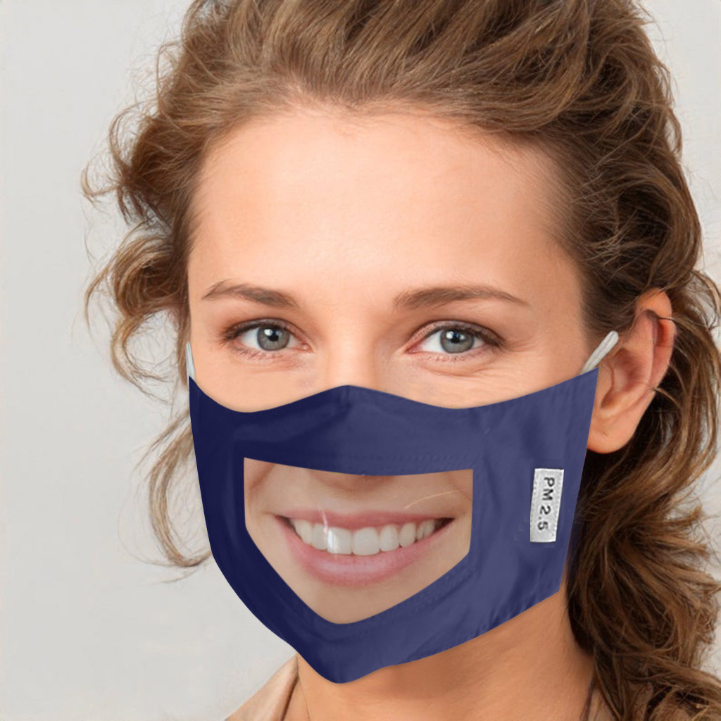 Отвечайте на вопросы на основе смайликов: прозрачная секция, которая делает губы владельца видимыми, делает чтение губ и создание мимики спикера возможными.
