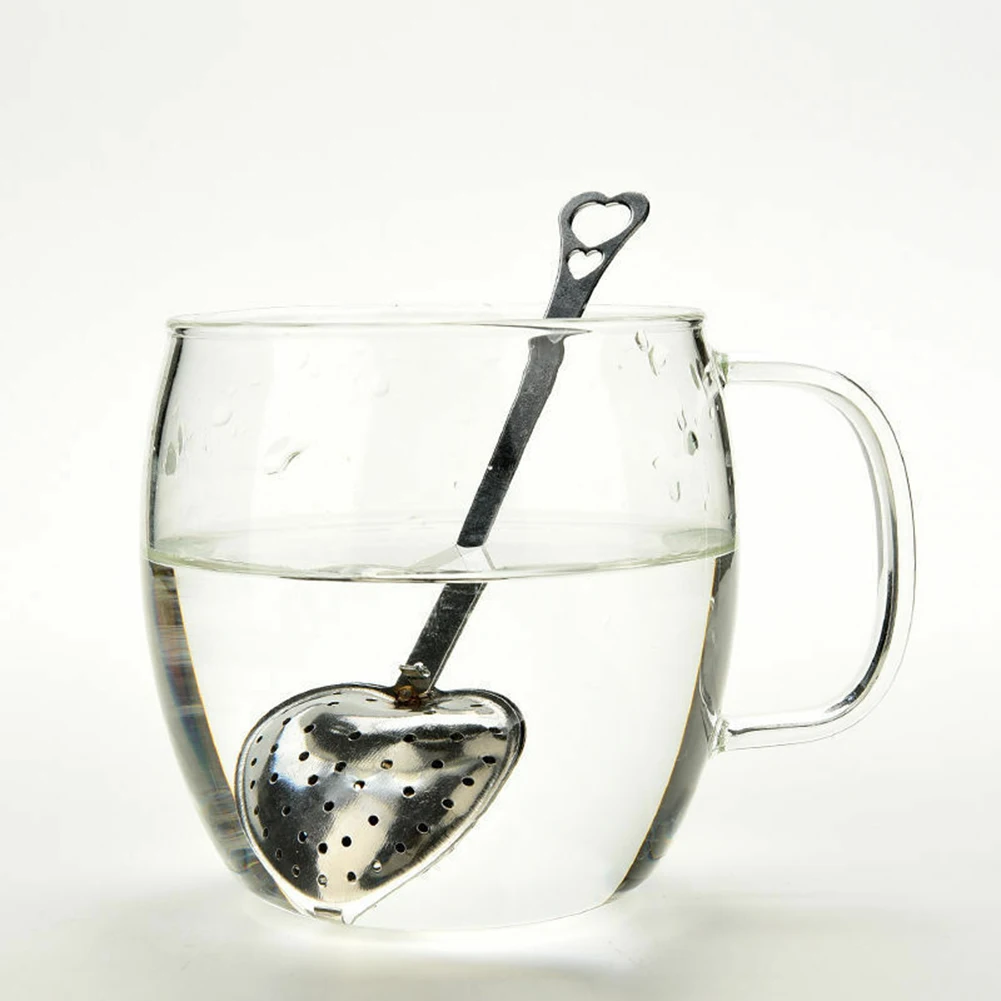 Ложка-ситечко из нержавеющей стали в форме сердца с сеткой для чая, травы, кофе, специй, фильтр, диффузор, Ручка фильтра, совок для душа, инструмент для чайной ложки