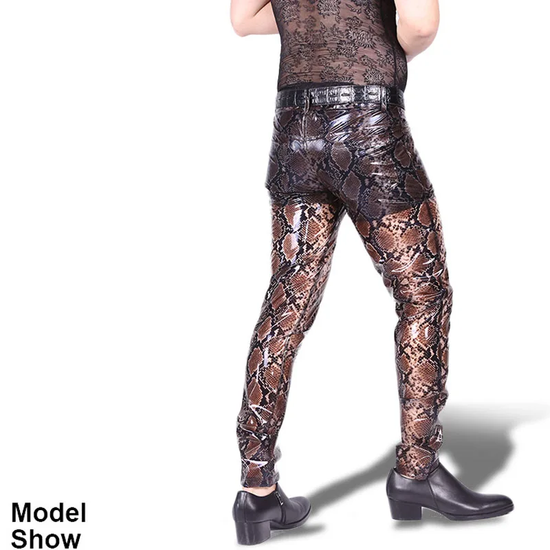 Прозрачные популярные сексуальные повседневные брюки из искусственной кожи PU с принтом питона, узкие брюки, модные прямые брюки, все клеевые, Semilucent