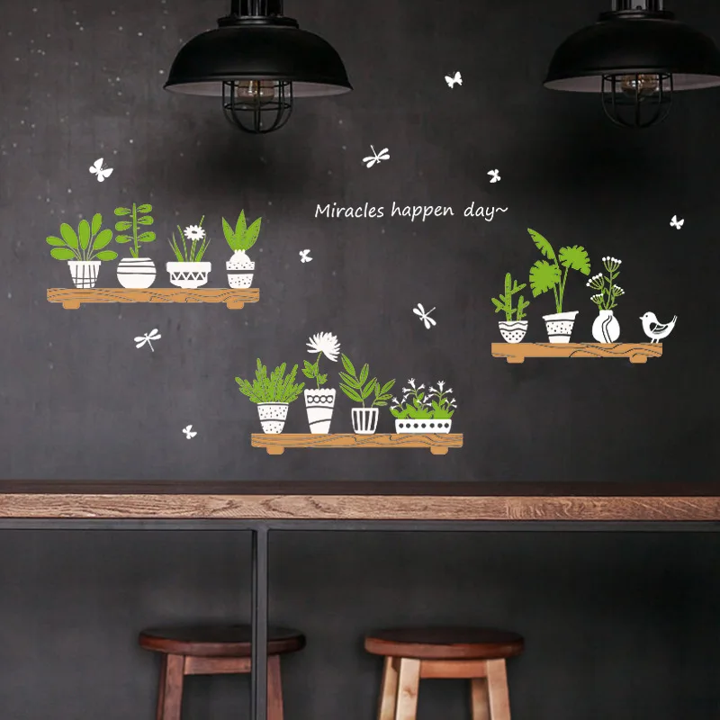* Зеленые растения бонсай бабочкиDIY художественная Наклейка на стену