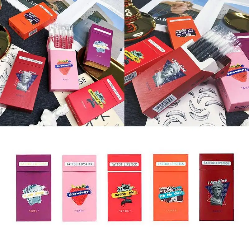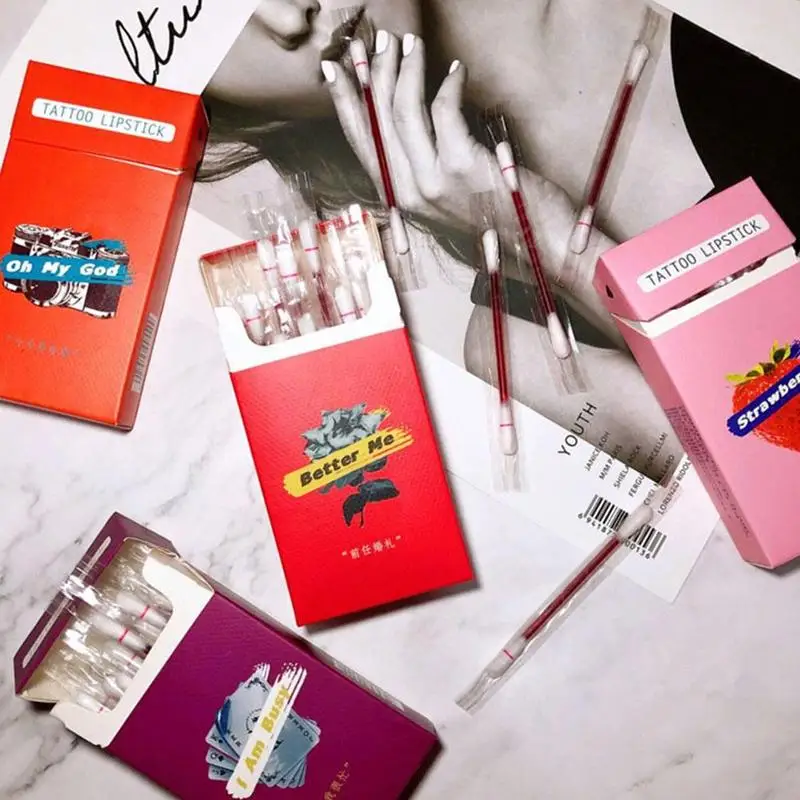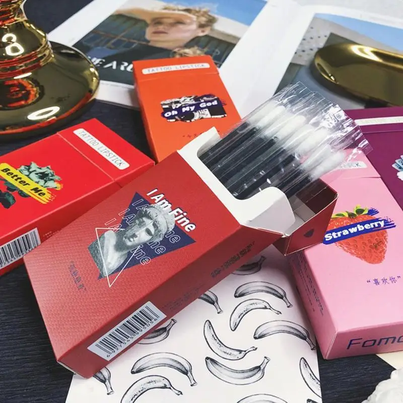 2. Упаковка коробки для сигарет, полная веселья, содержит 20 помад из хлопка, макияж в любое время и в любом месте