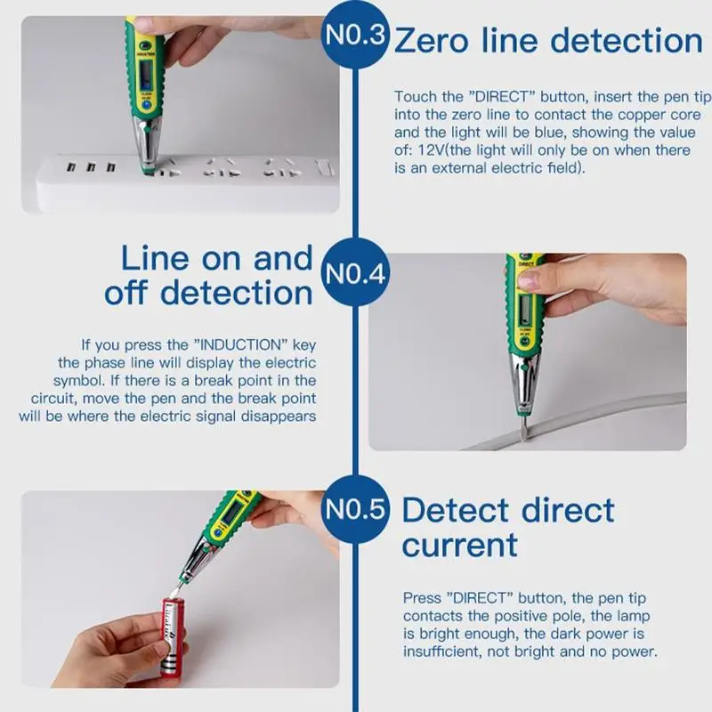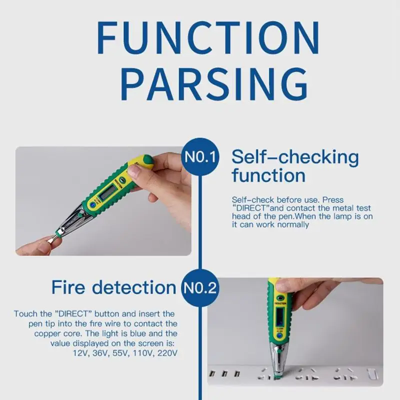 Он может использовать бесконтактную форму, чтобы определить, электрифицирован ли объект или нет, и может обнаруживать автомобильную Высоковольтную линию нарезания резьбы.