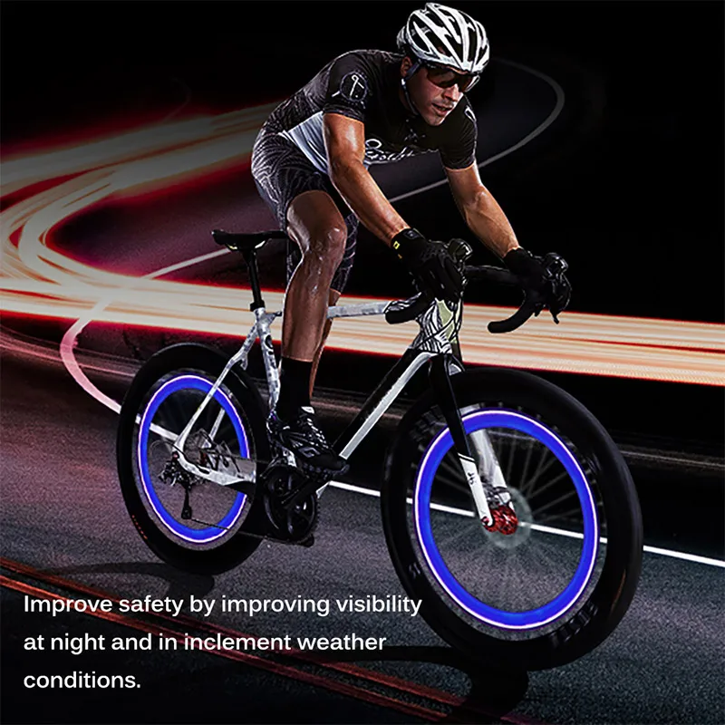 Эта светодиодный подсветка для велосипедного колеса подходит для большинства велосипедов, мотоциклов и автомобилей.