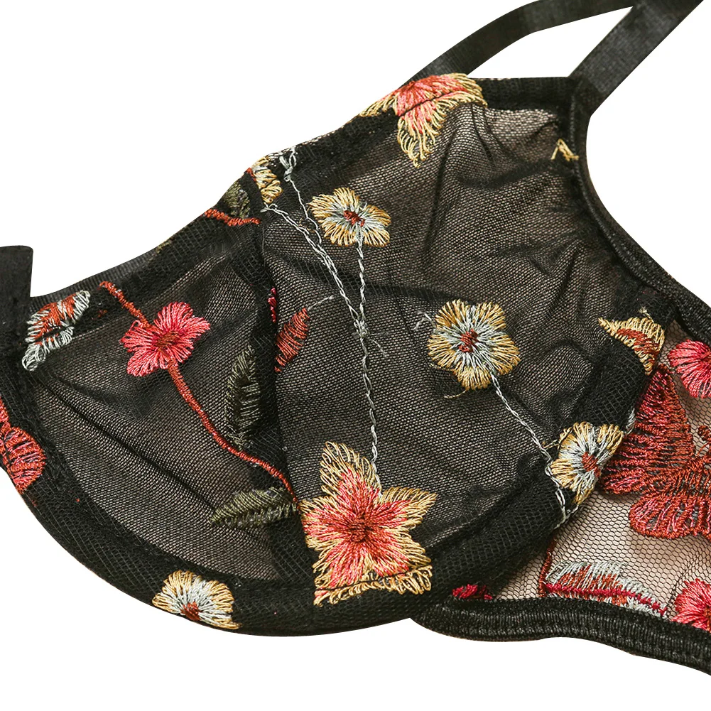 Комплект нижнего белья из двух предметов, женское сексуальное нижнее белье с цветочной вышивкой, нижнее белье, нижнее белье, черное ночное белье, одежда для сна, эротический сексуальный костюм