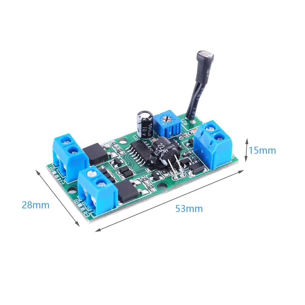 1. Описание: Это автоматический переключатель задержки. После включения питания, выход 1 повторяет три раза "ВКЛ ~ Выкл ~", а затем повторяет три раза на выходе 2 "ВКЛ", и продолжает цикл. Настройте временной интервал для достижения различных эффектов вспышки. Оборудована кухонным гарнитуром с светильник-чувствительным датчиком, Так что он появляется только в темных местах, но не в ярких местах. 2. Особенности: 1>. Он поставляется с чувствительным к светильник зондом, который может автоматически почувствовать изменения светильник. 2>. Он имеет два выходных канала. 3>. Он может регулировать скорость вспышки. 3. Описание: 1>. Название продукта: автоматический переключатель задержки 2>. Рабочее напряжение: 5 В ~ 11 В постоянного тока 3>. Выходной канал: 2 шт. 4>. Рабочая температура:-25 ℃ ~ 85 ℃ 5>. Рабочая влажность: 5% ~ 95% относительной влажности 6>. Размер: 53*28*15 мм 4. Описание штифта: 1>. Отрегулируйте скорость детонации. Поверните скорость детонации по часовой стрелке, чтобы увеличить скорость, и против часовой стрелки, чтобы замедлить скорость. 2>. Датчик на светильник имеет функцию вспышки только в темное время суток по умолчанию. Если функция управления на светильник не требуется, просто закройте или Отрежьте зонд. 5. Посылка: 1>.1 шт. автоматический переключатель задержки