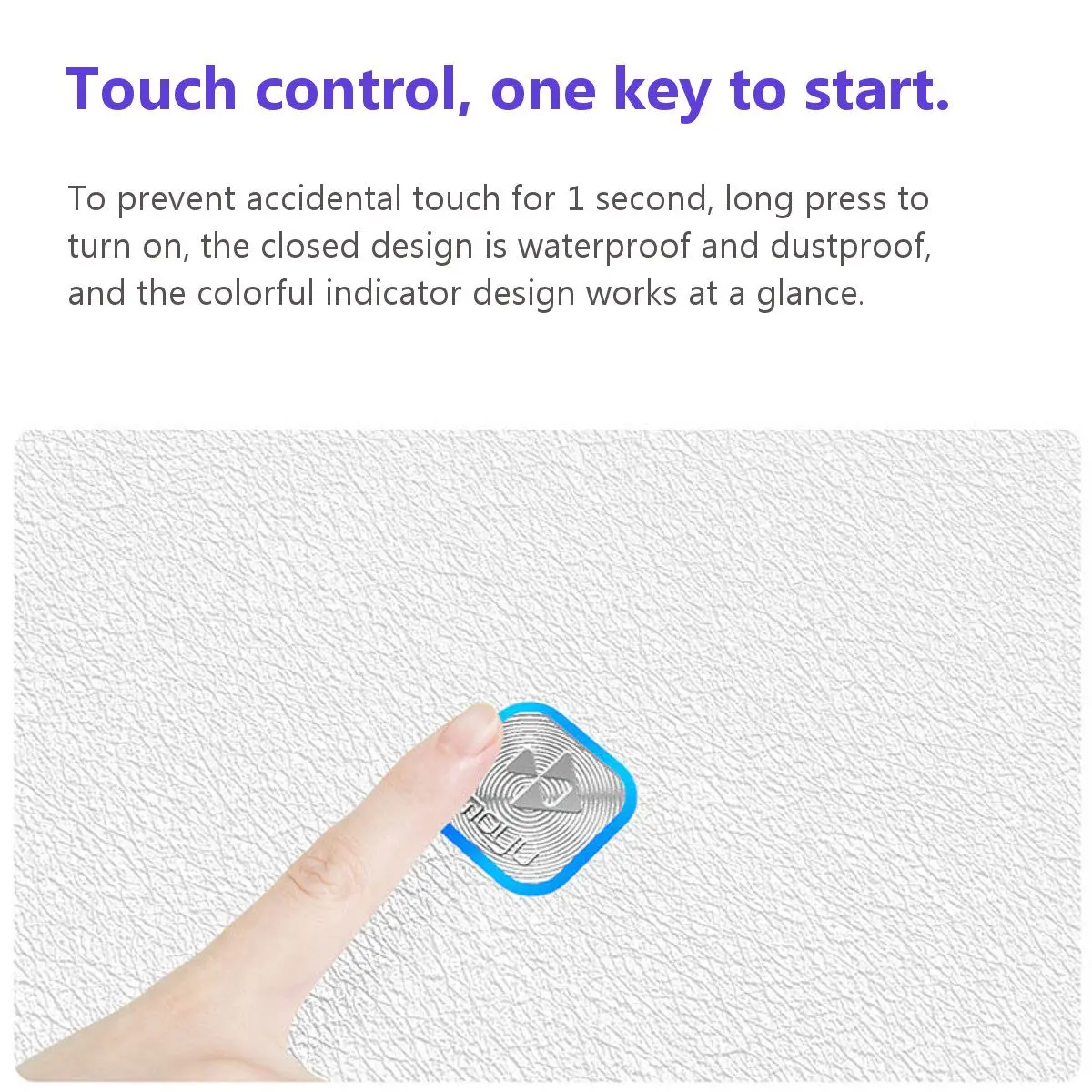 ?Сенсорное управление, одна клавиша для запуска.,Для предотвращения случайного прикосновения в течение 1 секунды, длительное нажатие для включения, закрытая конструкция является водонепроницаемой и пыленепроницаемой, а цветная конструкция индикатора работает с первого взгляда.
