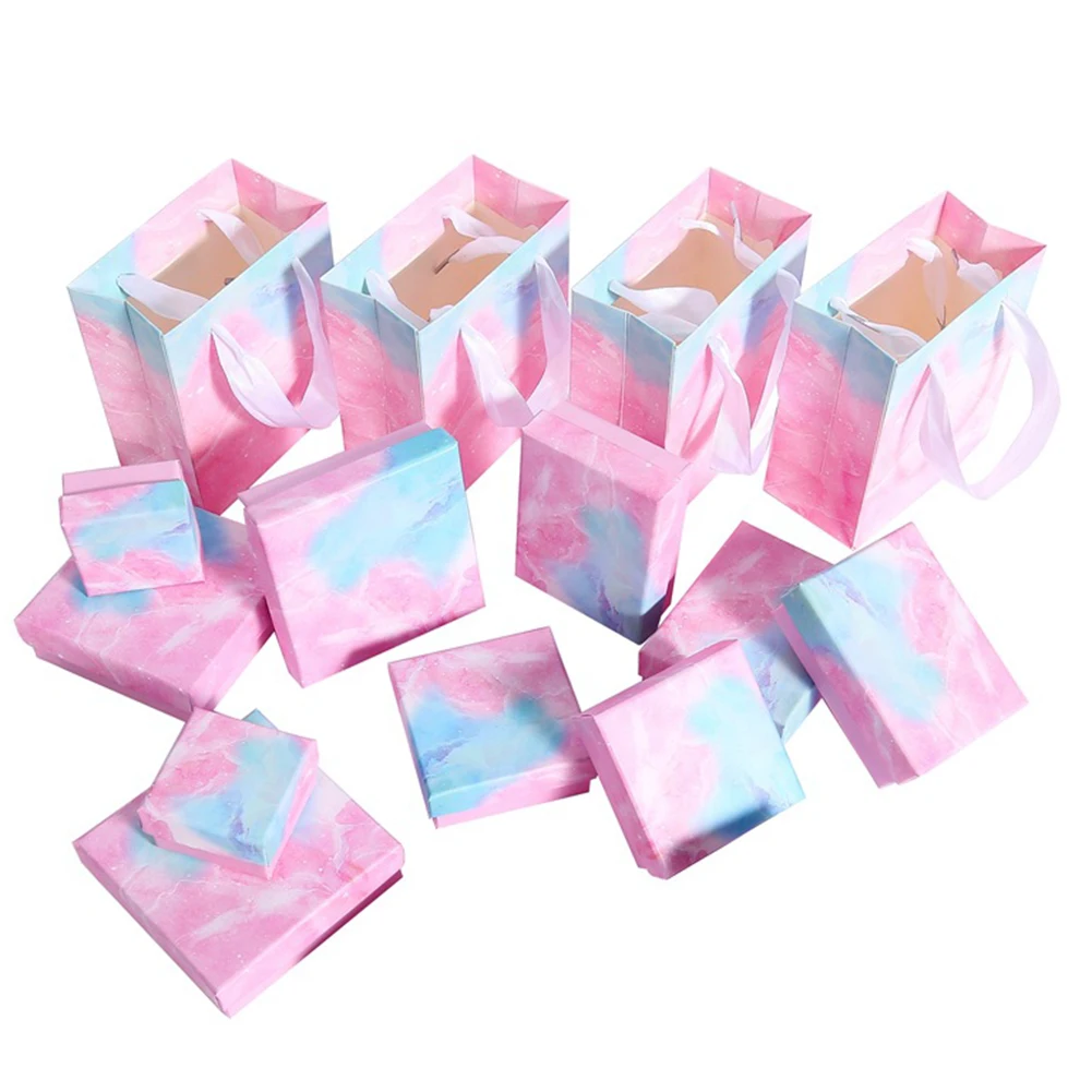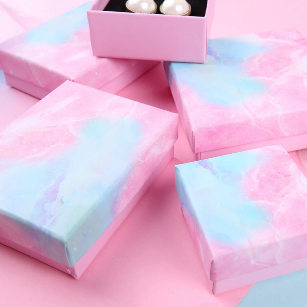 Красивая коробка, напечатанная мраморным узором, идеально подходит для хранения колец, серег или других украшений.