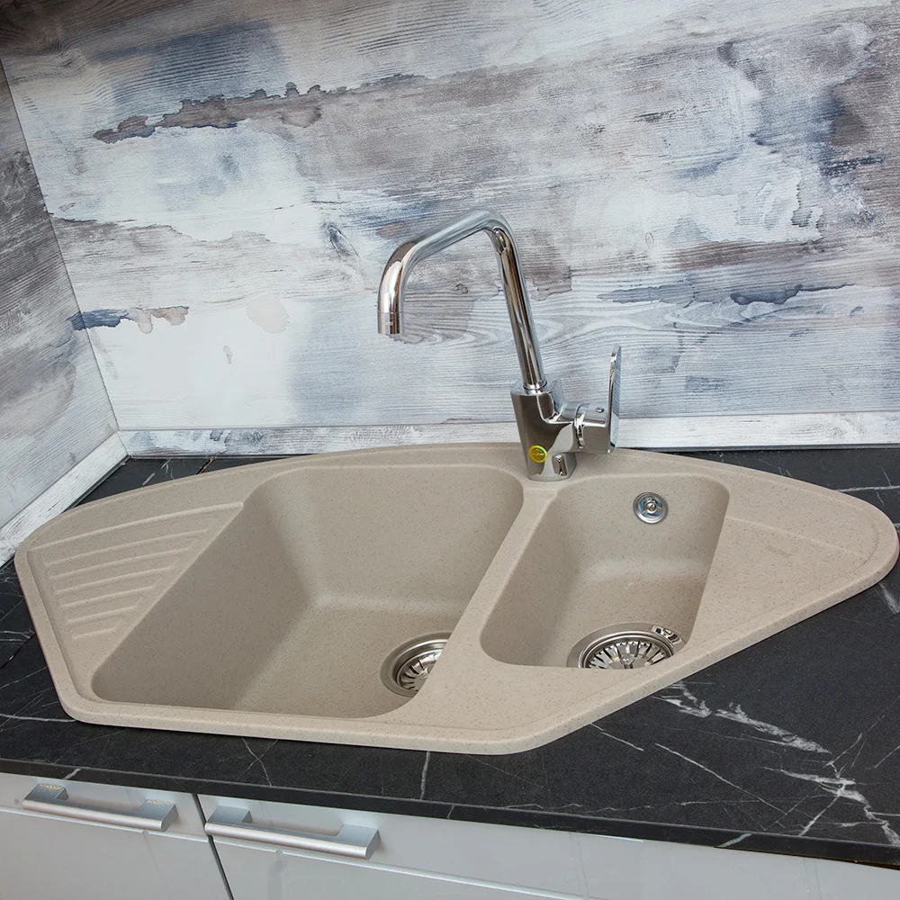 Для производства продукции используются кристаллы кварца, что делает раковину для кухни эстетичными и максимально долговечными.
