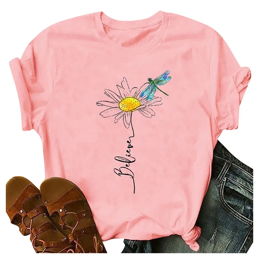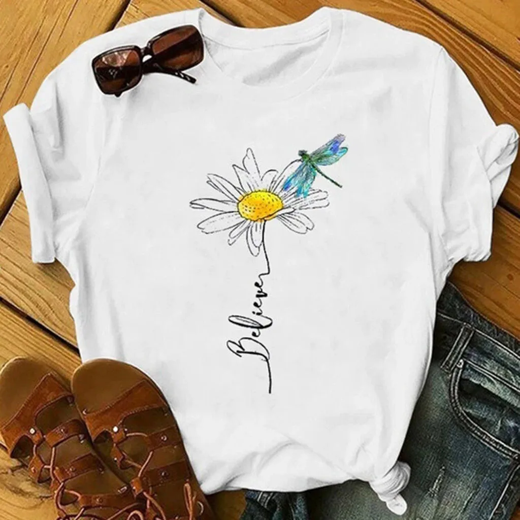 Женские повседневные рубашки с буквенным принтом, свободные футболки с коротким рукавом, топы, туника, блузка