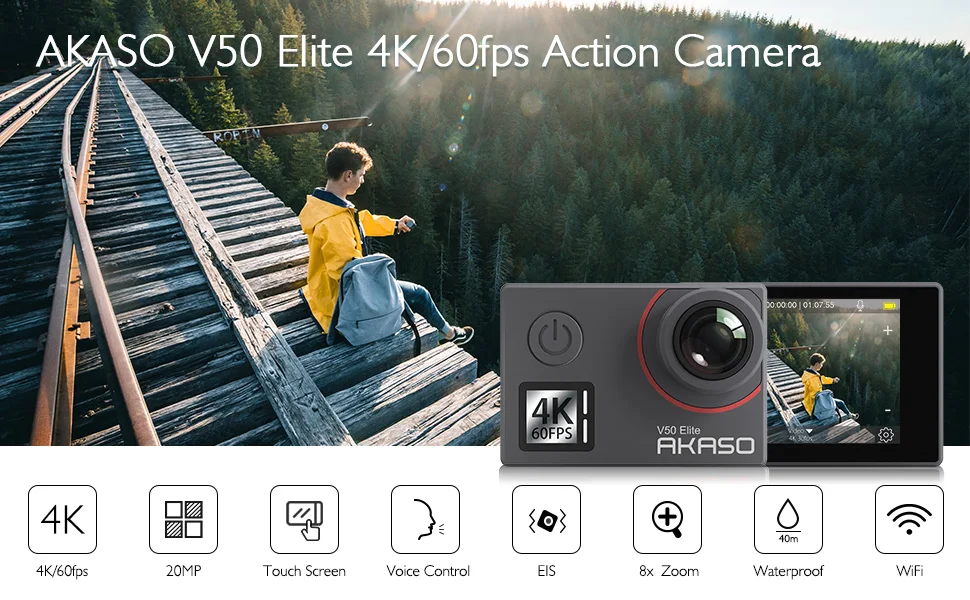 Вы можете управлять своей action camera AKASO V50 Elite с помощью голосовых команд, таких как «Action Start Video» и «Action Photo».