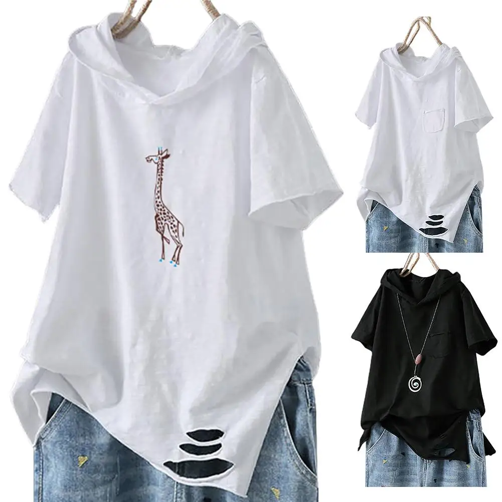 Женская Повседневная однотонная свободная футболка с коротким рукавом и принтом жирафа