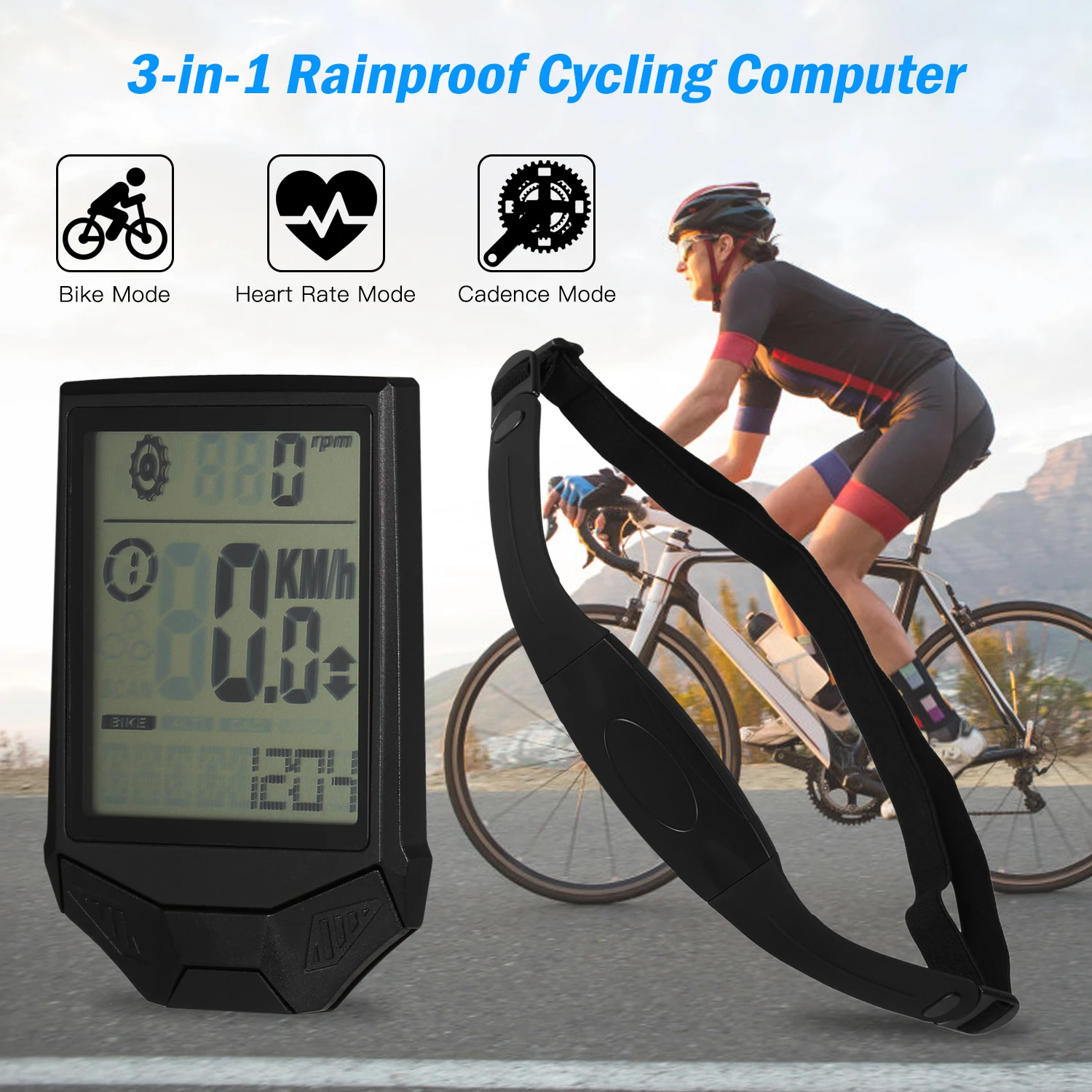 Lixada беспроводной Велосипедный компьютер велосипедный одометр спидометр ЖК-дисплей 3 в 1 велосипедный компьютер с монитором сердечного ритма