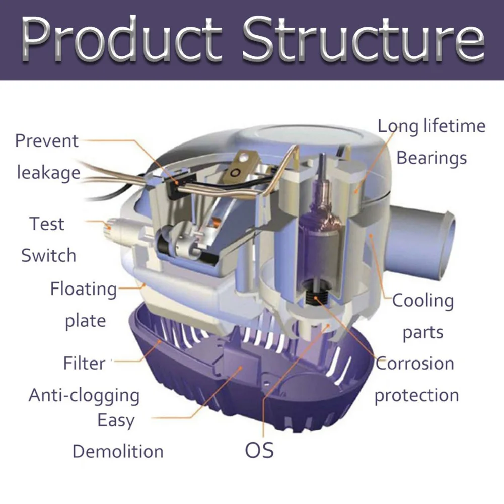 12V 750GPH Автоматическая лодка яхта погружной Электрический водяной насос