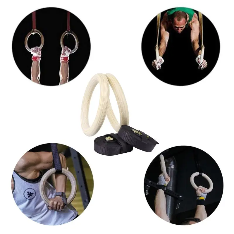 Кольца для спортзала, деревянные гимнастические кольца с 15 футовыми регулируемыми лямками, сверхмощное оборудование для тренажерного зала для тренировок, силовых тренировок, гимнастики, фитнеса, подтягивания и погружения (набор из 2)