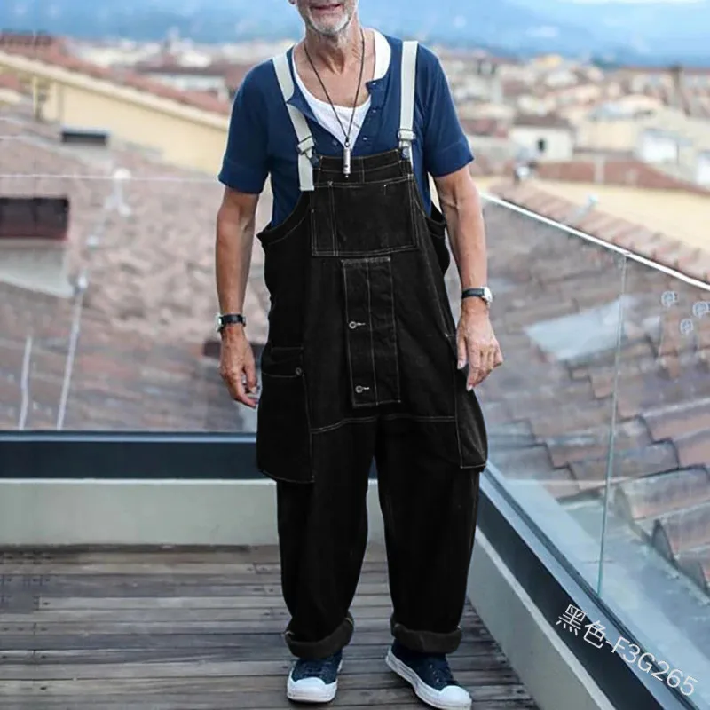 Мужской свободный джинсовый комбинезон, большие размеры 5XL, длинные брюки, однотонный сиамский комбинезон из денима с карманами, брюки, рубашка в комплект не входит
