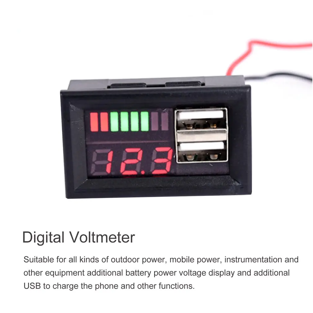 Светодиодный вольтметр с цифровым дисплеем измеритель напряжения Вольт тестер двойной USB 5V 2A для DC 12V автомобилей мотоциклов транспортных средств емкость батареи