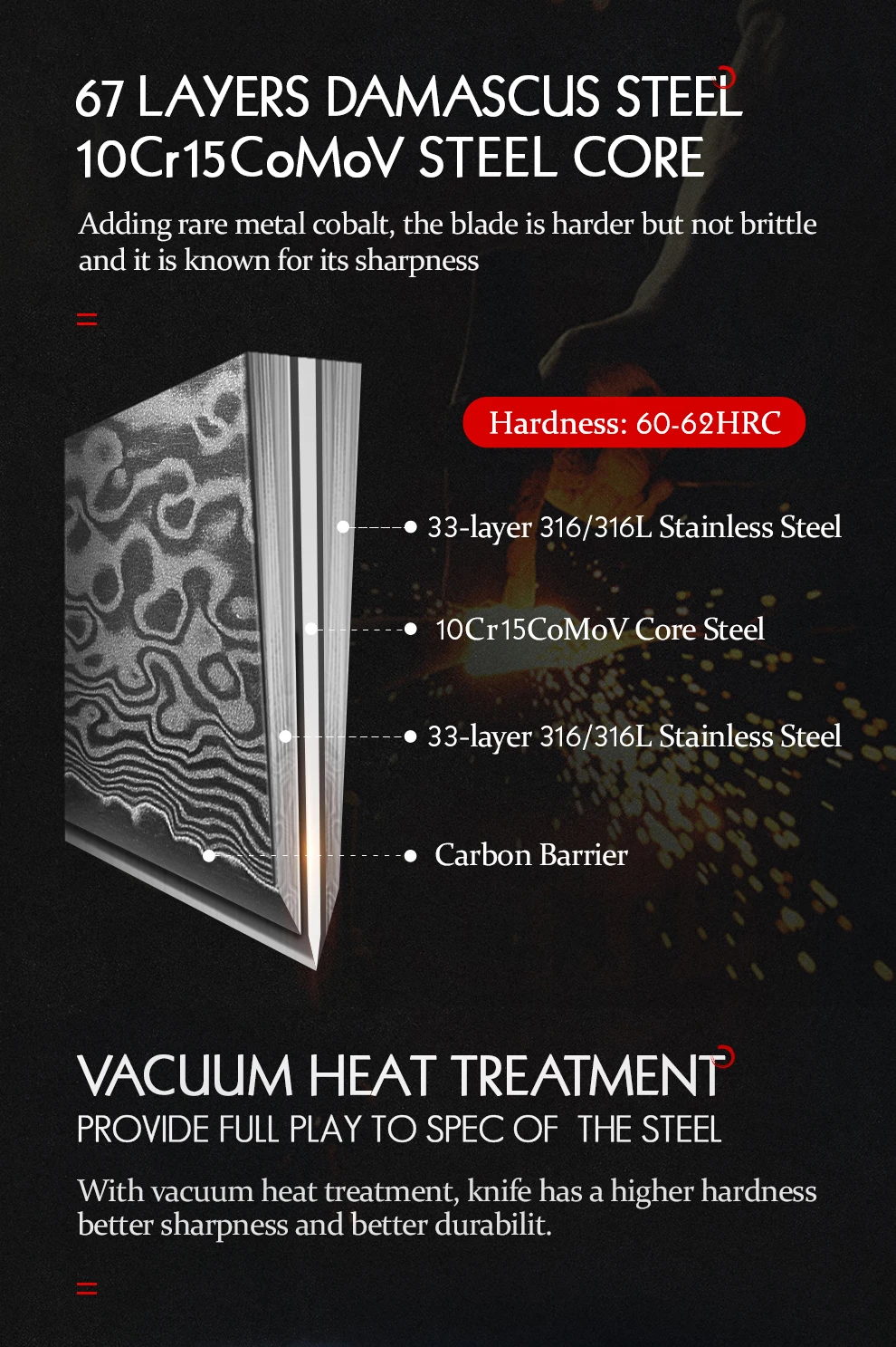 Материал лезвия:67 слоев Дамасская супер сталь
