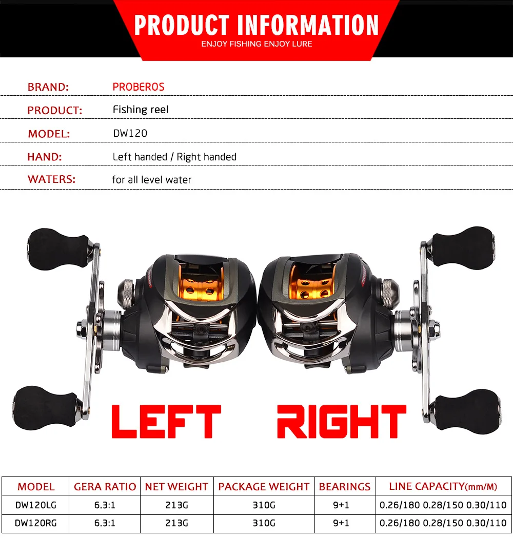Цельнометаллический 10-Axis капли воды колеса 6,3: 1-Скорость центробежная тормозная Универсальный Магнитный Литье металла катушка для рыбалки