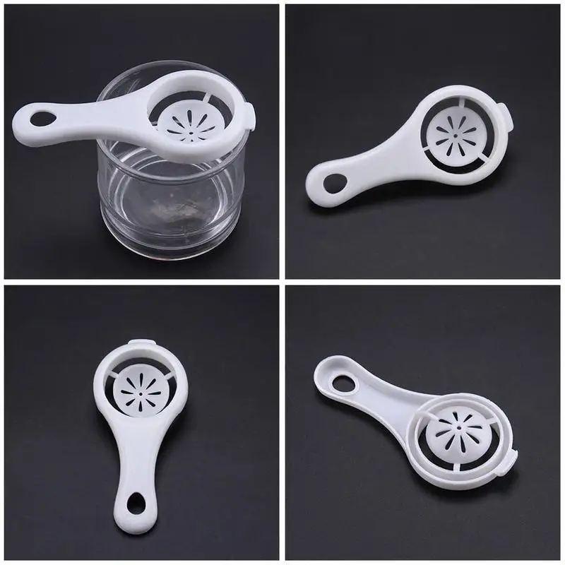 Налейте взбитое яйцо в устройство и осторожно встряхните, затем яичный белок может течь вниз и отделиться от яичного желтка.