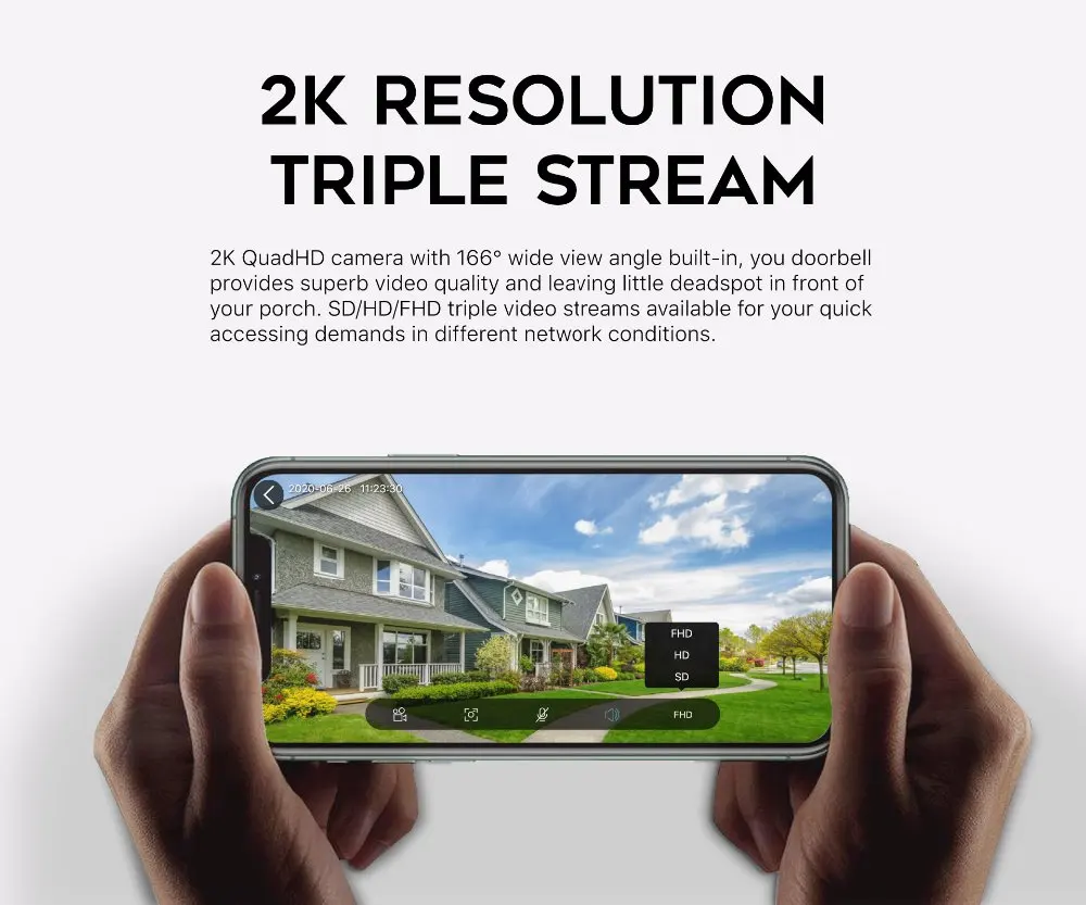 WiFi видео дверной звонок 2K DC12V HD видео Беспроводная камера Угловое крепление Обнаружение движения умная дверь Интерком поддержка облачного хранения
