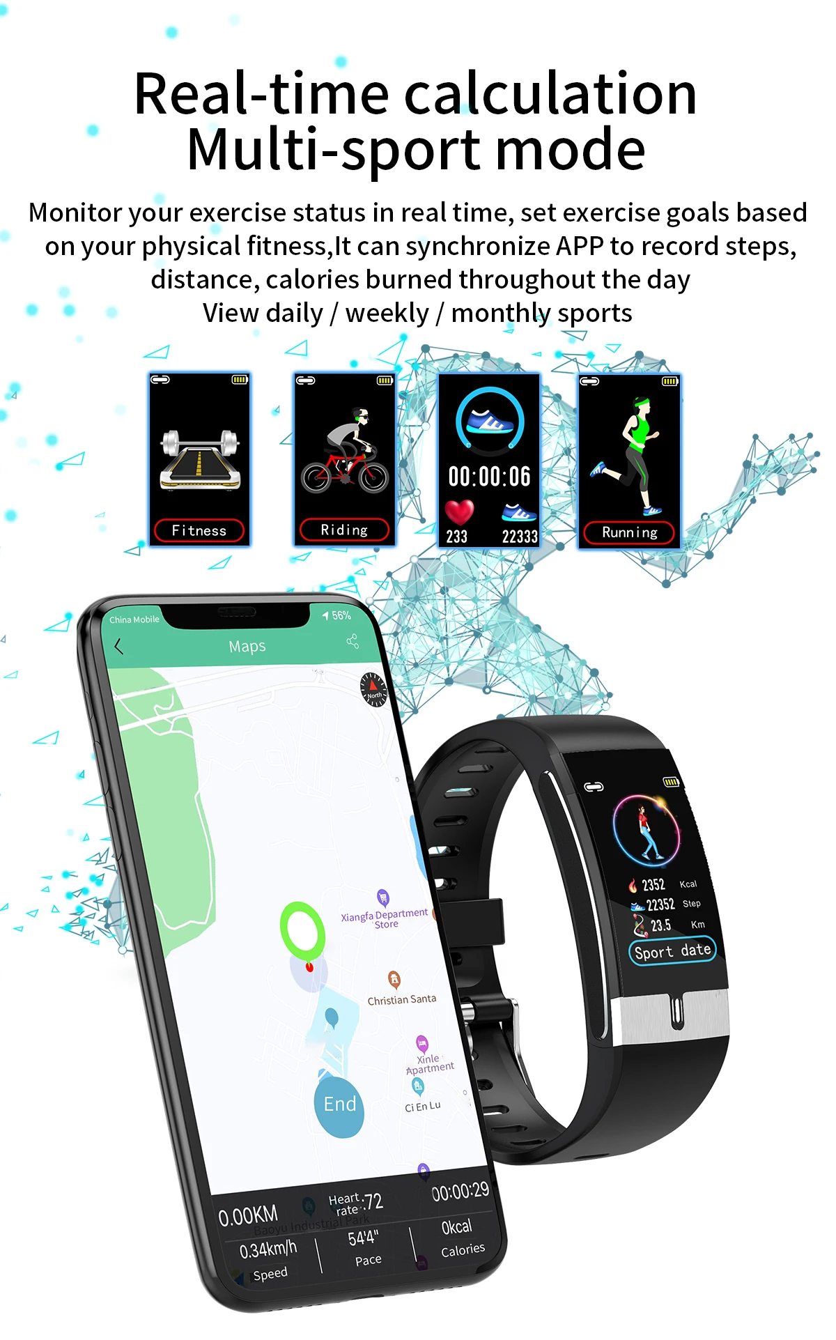 1. Функция контроля температуры тела 2. Функция ЭКГ, медицинская диагностика AI 3. Мониторинг сердечного ритма артериального давления кислорода в крови 4. Экологически чистый ТПУ ремешок, не имеет ощущения, пригодный без рук. 5. Разрешение HD 1,08 цветной экран, динамический и простой пользовательский интерфейс. 6. Несколько видов спорта (бег, Велоспорт, плавание, бадминтон). 7. Мониторинг сна. 8. Глобальный толчок содержимого шрифта, 9. Автоматическое включение экрана 10. USB plug and play зарядка (не требуется кабель для передачи данных) * Другие функции: Мониторинг температуры тела, ЭКГ, AI медицинская диагностика, пульс, кровяное давление, кислород в крови, Пошаговый подсчет, калории, расстояние, мониторинг сна, режим упражнений, напоминание о звонках, напоминание о тревоге, поднятие экрана, обмен данными в социальных сетях) подождите Встряхните, чтобы сделать фотографии, напоминания о сидячем положении, найдите. 1 (1) 1. Модель продукта: E66 2. Основной чип управления: NRF52832 3. ECG чип: американский импортный чип Ti129 4. Оптоэлектронные Чипы: силиконовые лаборатории 5. Вибрация: Отключение звука/вибрация 6. Уровень водонепроницаемости: IP68 7. Совместимые системы: Android 4,4 и выше, iOS 8,2 и выше 8. Особенности: температура тела, ЭКГ, медицинская диагностика AI, кровяное давление, кислород в крови, несколько режимов упражнений, функция здравоохранения 9. Размер экрана: 1,08 дюймов HD цветной экран, 10. Тип экрана: TFT 11. Bluetooth: 4,0 BLE (низкая мощность) 12. Тип батареи: полимерная литиевая батарея высокой плотности 13. Емкость аккумулятора: 105 мАч 14. Метод зарядки: USB plug and play зарядка 15. Время зарядки: около 2 ч 16. Срок службы: 6-10 дней использования, 30 дней в режиме ожидания (Конкретное время зависит от частоты личного использования и частоты push-контента) 17. Метод управления: сенсорное управление, управление мобильным приложением 18. Материал переднего чехла: поликарбонат, чехол для поверхности электрода: Порошковая Металлургия 19. Материал задней панели: нержавеющая сталь 316, 20. Браслет: экологичный ТПУ 21. Язык приложения: десять языков s, китайский, английский, традиционный, японский, немецкий, испанский, французский, итальянский, тайский, русский 22. Языки прошивки: китайский, английский, традиционный, японский, французский, немецкий, итальянский, испанский, русский, португальский, малайский, корейский, польский