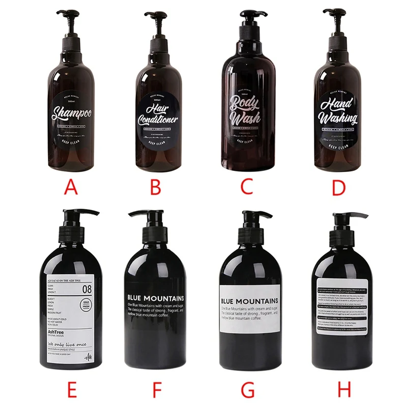 Материал: ПЭТ; Упаковка: полиэтиленовый пакет; Размер: ABCD: 24,5*6,8*6,8 см. Модели EFGH: 20,5*6,8*6,8 см пункты продажи: 1. Изготовлен из ПЭТ-материала, прочный; 2. Простая и элегантная форма; 3. Большая емкость, емкость 500 мл, можно разделить на шампунь, гель для душа, мыло для рук, красиво и практично