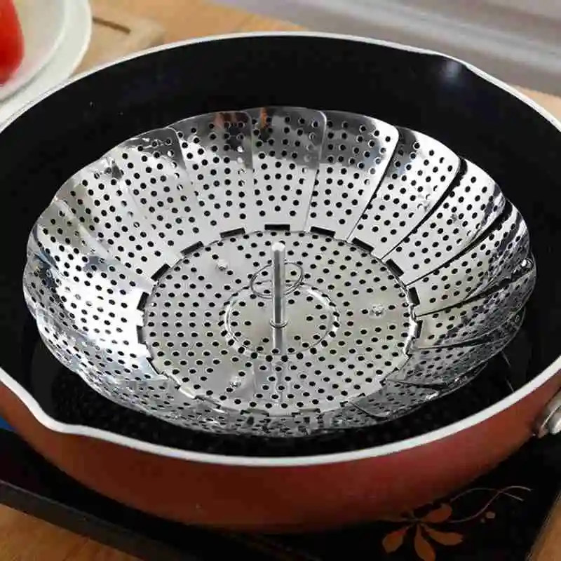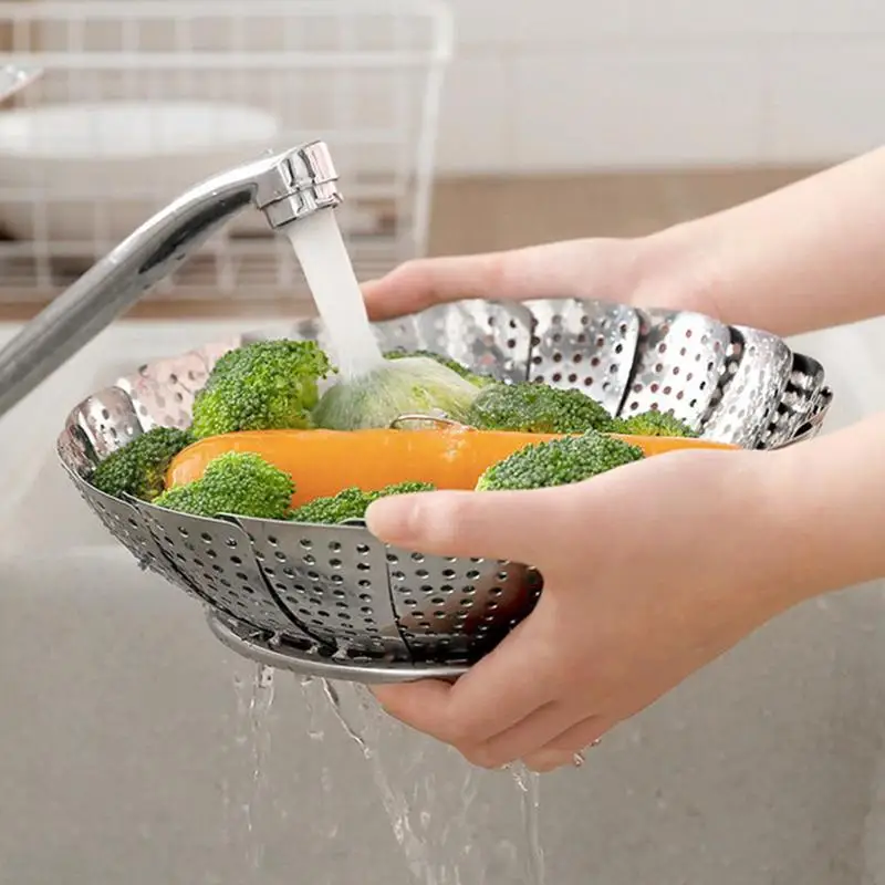 6. Пароварку можно сложить для хранения, ее можно расширить до кастрюль/сковородок и скороварки различных размеров, превратив вашу любимую кастрюлю в безопасную пароварку. Открывается как водяная Лилия и компактно складывается для экономии места для хранения.