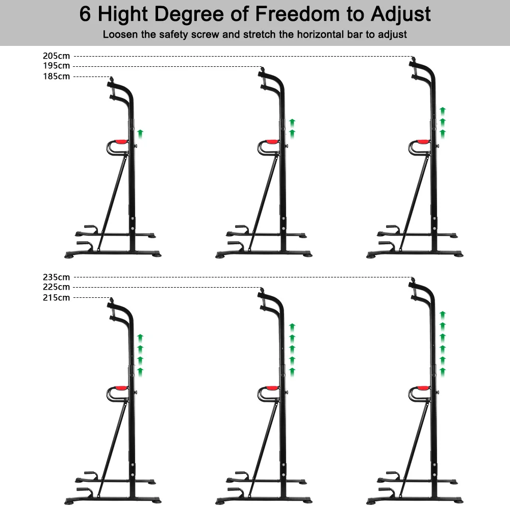 Подъемная станция имеет 6 уровней регулировки высоты, в диапазоне 73 "-93"(185-235 см), мульти регулирование передач, чтобы соответствовать вашим потребностям во время тренировки.