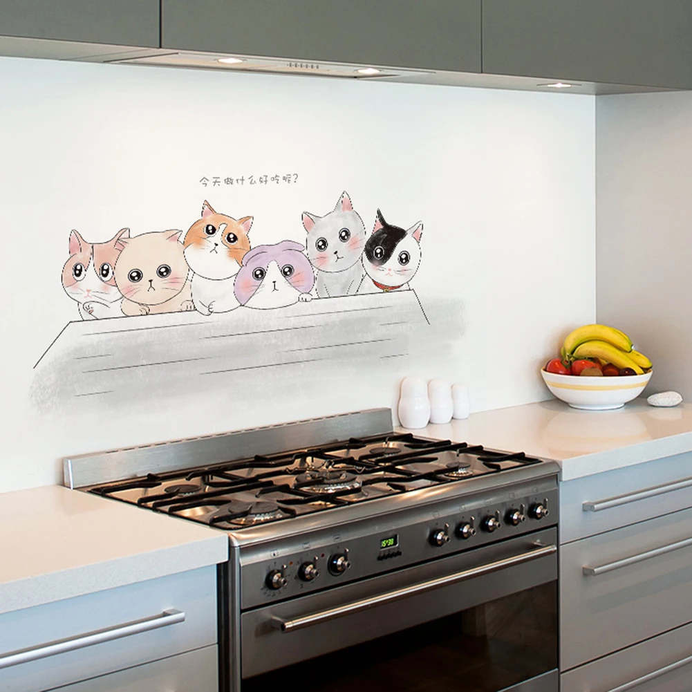 Антимасляная термостойкая Милая Наклейка на стену в виде кошки, наклейка для кухни, декор для ванной комнаты