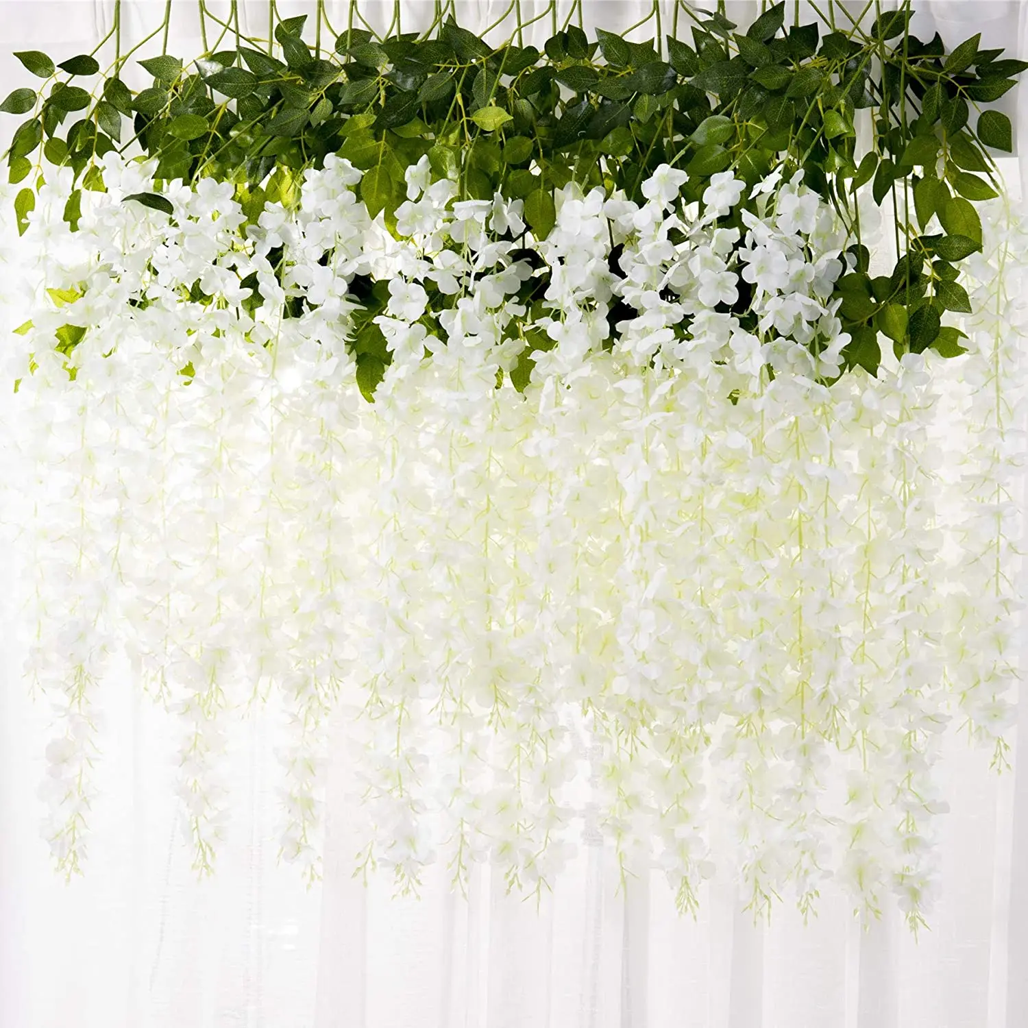 Материал: 90% шелк и 10% пластик Количество: посылка из 12 предметов искусственный цветок глицинии гирлянды. Каждая цветочная гирлянда длиной 3,6 фута. Каждая лоза имеет 3 ветви, каждая ветка около 1,8 футов. Подходит для: отличный выбор для декоративной свадебной сцены. Вы можете использовать эти лозы с цветами глицинии, чтобы висеть на вашей свадебной арке или висеть на потолке. И везде, где вы хотите, чтобы они были украшены, например: из окна, осенью в саду и так далее Изделия: полные и мягкие лепестки делают их более красивыми. Натуральный дизайн делает его похожим на Настоящие Цветочные лозы. Не выцветает и не высыхает. Высокое качество шелка может держать его как новый в течение длительного времени. Простота использования: только сгибание ветки и подвешивание на том месте, где вы хотите. Если нет висячего места, вы можете висеть на линии. И еще красивее. Высокая биоточность: натуральные цветы, полные и мягкие лепестки, яркие реалистичные и реалистичные, выглядят более естественными и красивыми, идеально подходят для свадебного украшения, украшения стола или элегантного домашнего декора, также подходит для улицы. Цвет: Ivoy | Посылка товара количество: 12 Цветочный венок Изделие: 12 шт.; Вистерия; Лоза с цветочным узором Материал: 90% шелк 10% пластик Длина: 3.6ft Примечание: Хранить вдали от источников огня Если листья Отпадают, вы можете установить их обратно рукой