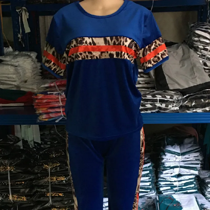 Женский бархатный комплект из двух предметов Dashiki, комплект из топа и брюк с леопардовым принтом, весна-лето 2019