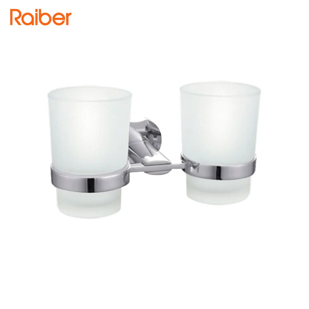 Двойной стакан Raiber R53903 изготовлен из матового стекла, с держателем из латуни. Благодаря хромированному покрытию держатель стойкий к коррозии. Так как стакана два, их можно использовать сразу по двум назначениям: один как подставку под зубуную пасту и щетки,а второй для полоскания рта. Стакан крепится к стене, что отлично сэкономит пространство у раковины и освободит место под уходовые средства.