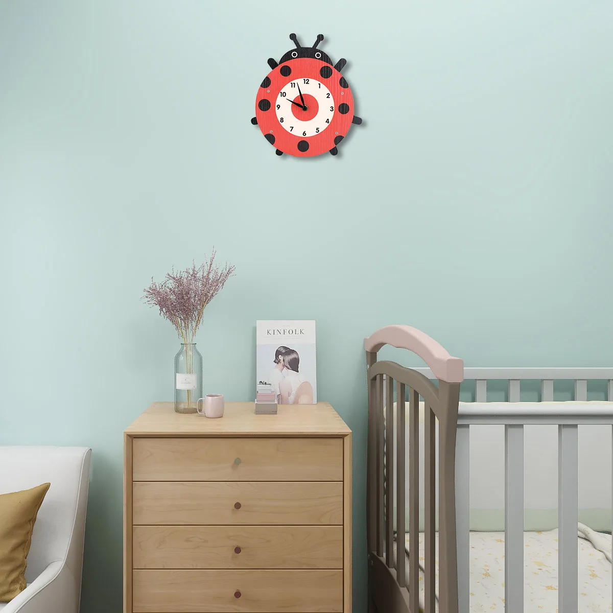Cartoon clock: There are black spots on the back of the ladybug dial regularly, and six small feet will follow the clock and swing.