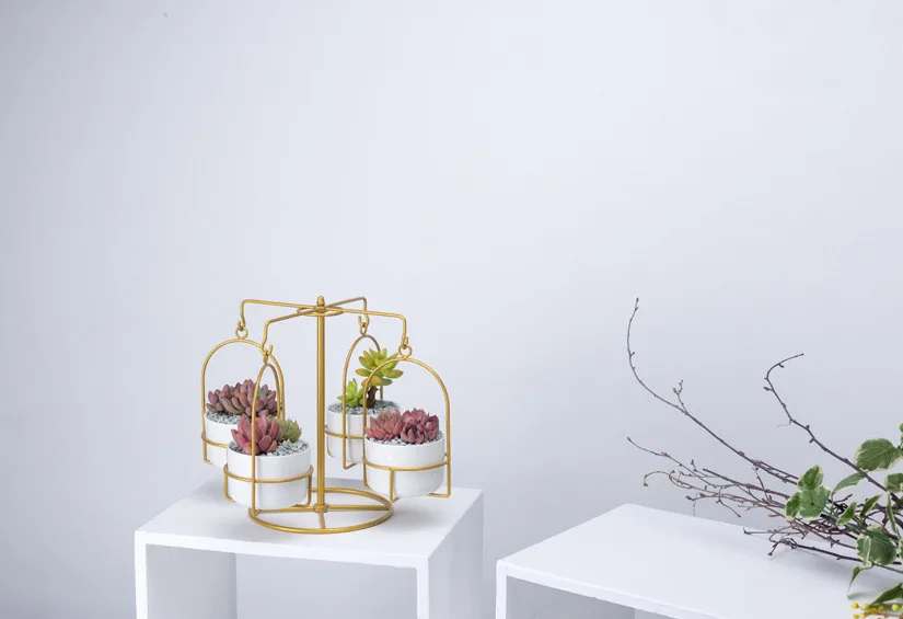 Карусель круглый керамический цветочный горшок железный каркас комбинированный набор