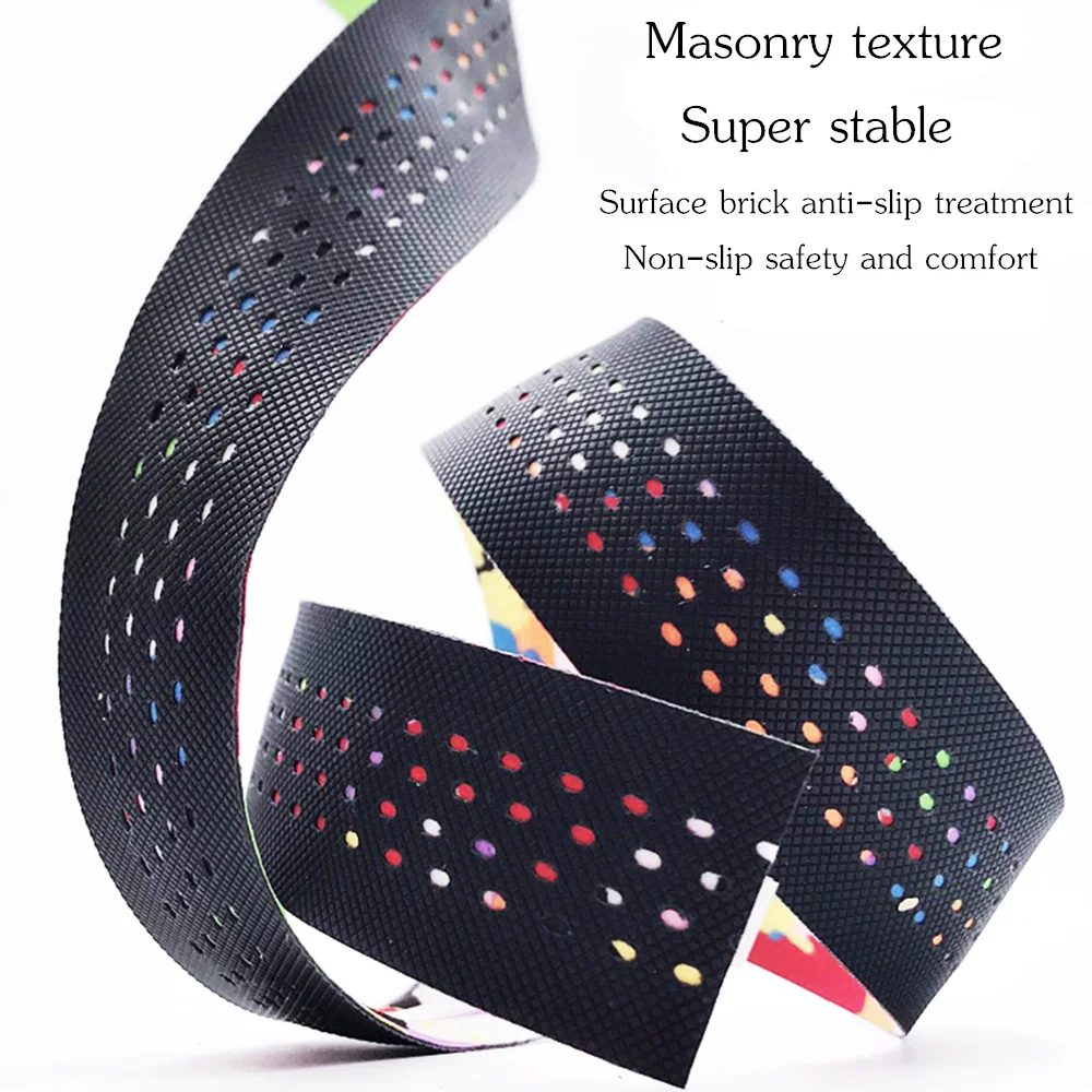 Комбинированный двойной материал из полиуретана + Эва Чувствовать себя комфортно, хорошая амортизация, хорошая дальняя езда Текстура кладки супер стабильная Противоскользящая обработка поверхности кирпича Нескользящая безопасность и комфорт Дизайн поверхностного перфоратора Хорошая воздухопроницаемость Многоцветная дополнительная забавная езда Несколько вариантов цвета с различными потребностями Амортизационный удар эффективно уменьшает усталость рук улучшает комфорт езды Повторяемое запутывание Толщина 3 мм подходит для комфортных поездок на большие расстояния Размер: 2150*30*3 мм Материал: полиуретан + Эва Вес: около 32 г/каждый (включая вилку)