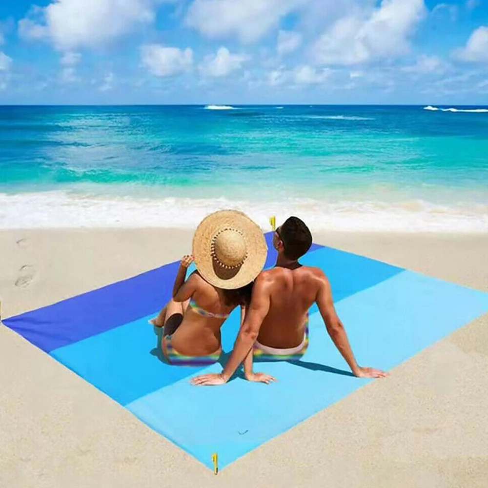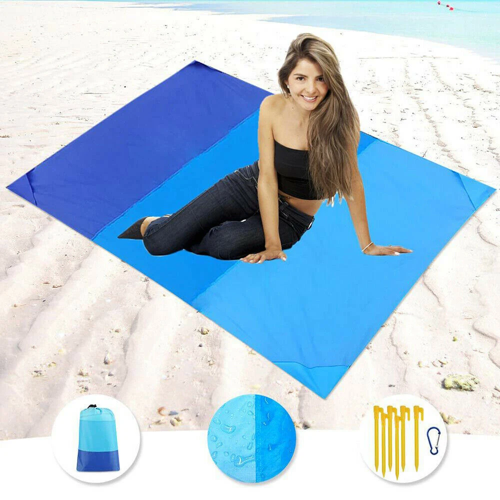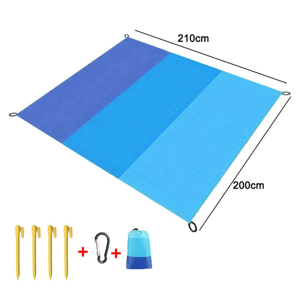 Легко фиксируется-мы вышлем вам 4 контакта для фиксации коврика. Он будет надежно закреплен на пляже или траве, чтобы предотвратить ветер от выдувания.
