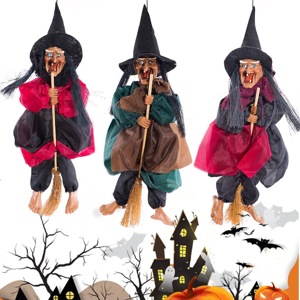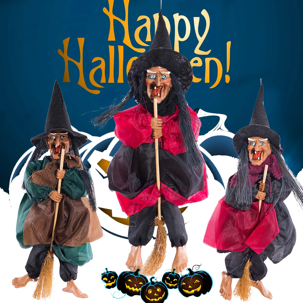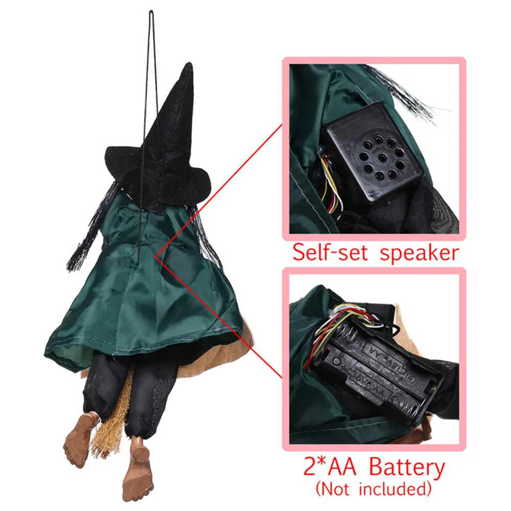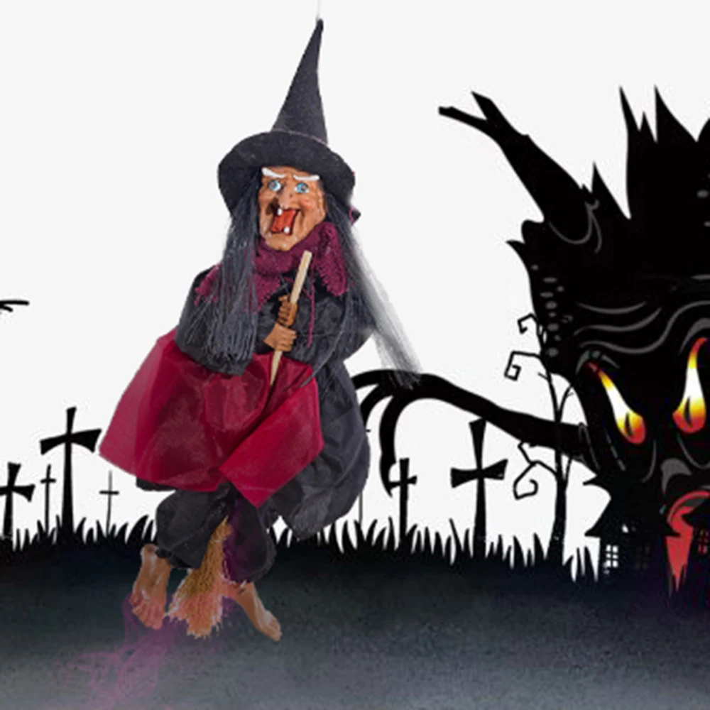 Хэллоуин висит ведьма куклы Голосовое управление Опора анимированные призрак страшная езда метла настенные Висячие вечерние уличные игрушки для украшения дома