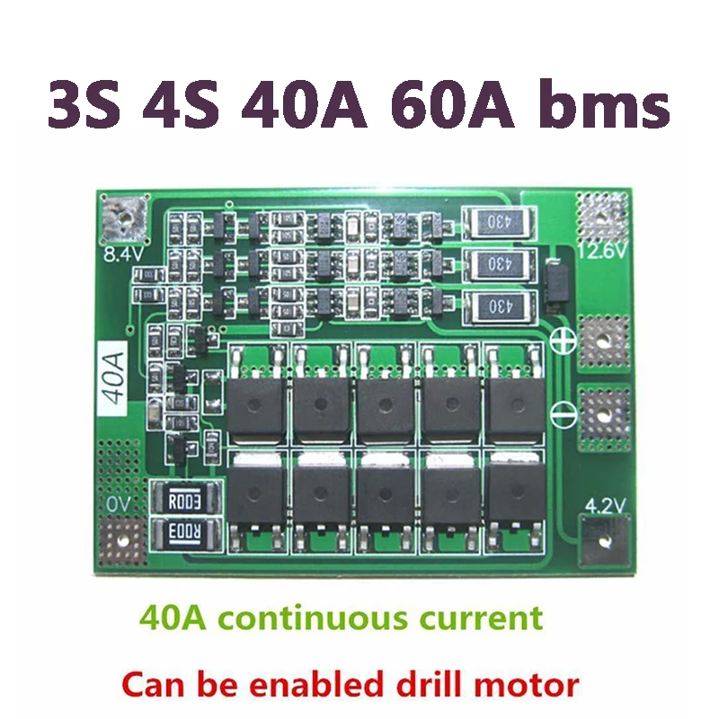Защитная плата 3S/4S 40A/60A 18650 BMS, для зарядки литий-ионных батарей, для двигателя перфоратора, 11,1 В/12,6 В/14,8 В/16,8 В с увеличителем/балансиром