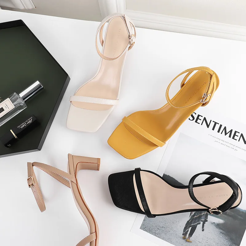 Женские босоножки; Новинка 2020 года; Сандалии с ремешком; Женская обувь на толстом каблуке; Обувь на высоком каблуке с пряжкой и квадратным носком; Обувь для стриптиза