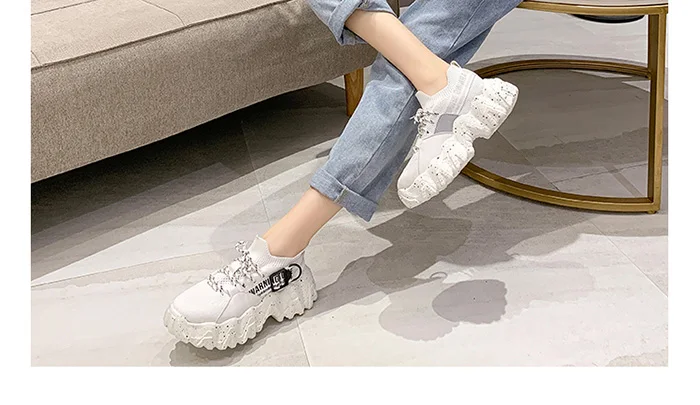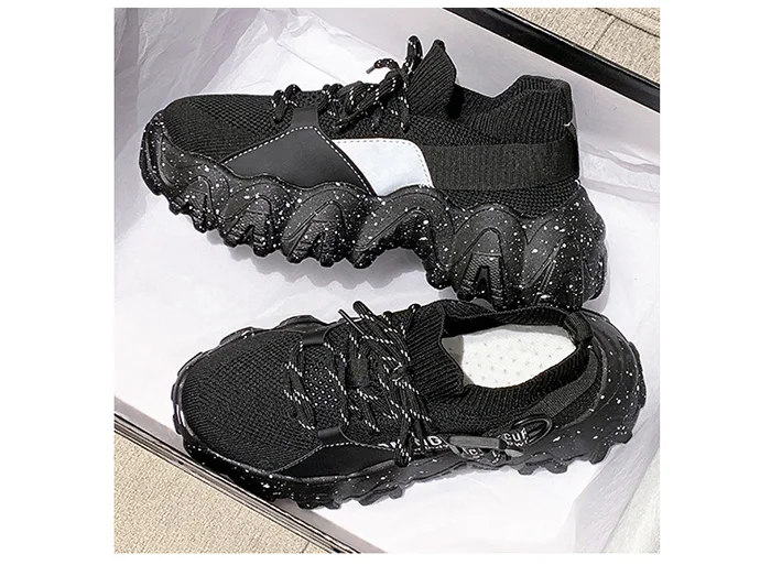 Женские массивные кроссовки; Новинка; Женская спортивная обувь черного и белого цвета; Кроссовки для бега на толстой подошве; Модная женская Вулканизированная обувь в Корейском стиле