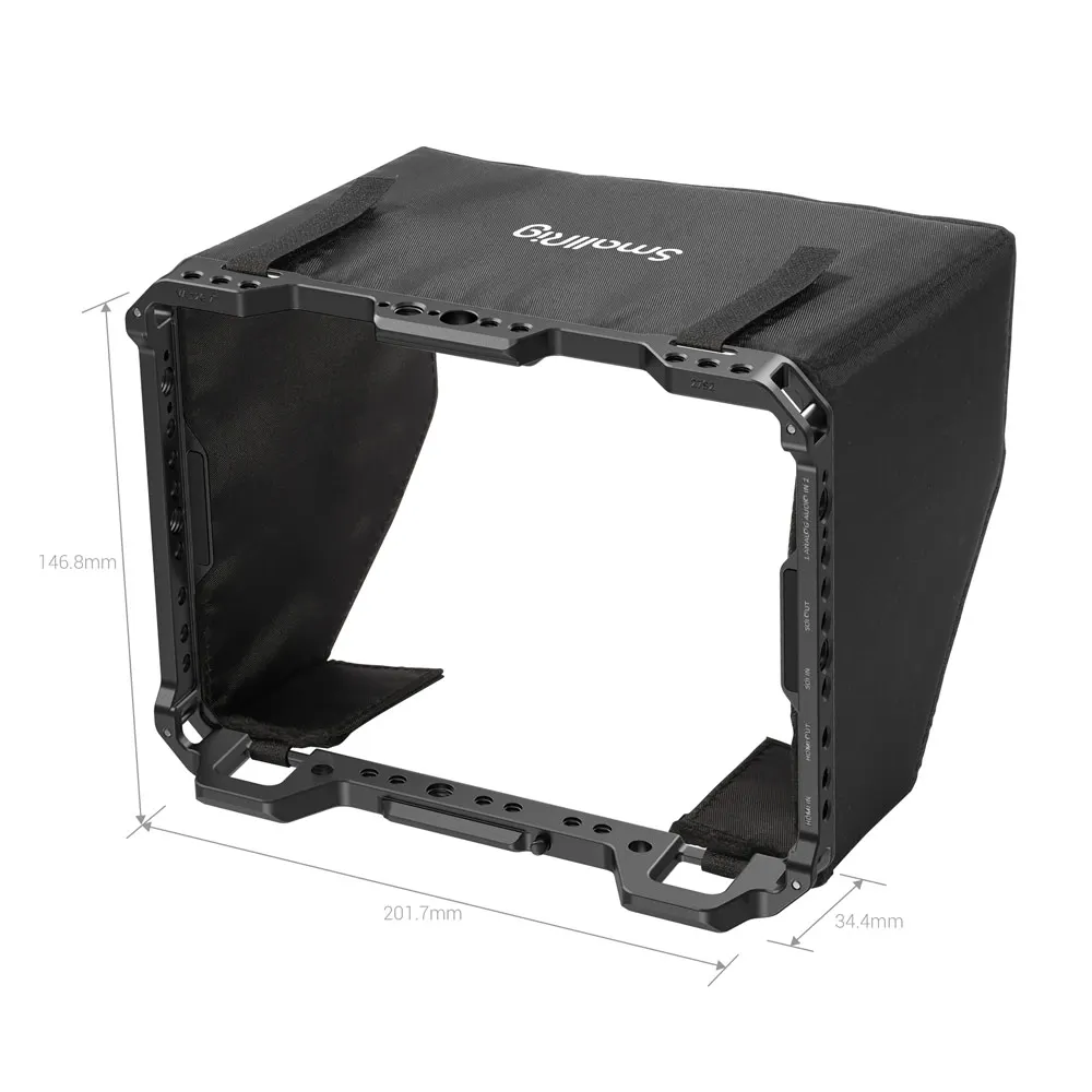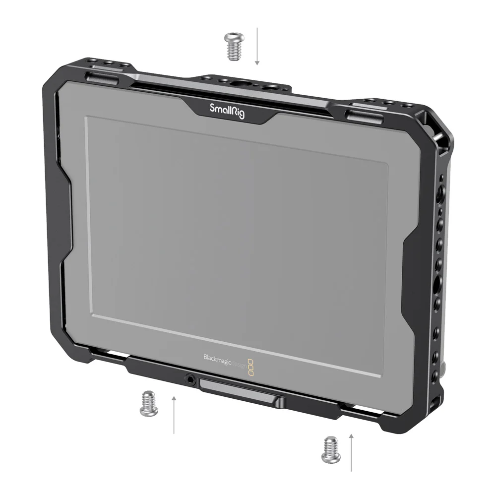 SmallRig клетка с солнцезащитным капюшоном и HDMI зажимом для Blackmagic Design Video Assist 7 "12G-SDI/HDMI 2792 Предназначен для обеспечения всесторонней защиты и аксессуаров для монитора. Клетка крепится к монитору с помощью трех винтов 1/4 ”-20, с одним сверху и двумя снизу. В комплект входит зажим HDMI для защиты кабелей HDMI. Специальная Солнцезащитная крышка включена для обеспечения защиты от бликов при съемке на открытом воздухе. Он имеет несколько резьб 1/4 ''-20 и ARRI 3/8''-16 вокруг клетки и рельсы NATO сверху и снизу, что позволяет устанавливать аксессуары, такие как Magic Arm 2071 Или 2115, крепление монитора 2205 И беспроводной кронштейн для приемника 2107. Вы также можете прикрепить Samsung T5 SSD держатель 2245B Или универсальный держатель SSD BSH2343 Для внешнего SSD. Используйте зажим для стержня 1493, двойной стержень 1871 и зажим для стержня 1626 для настройки комплекта монитора. Клетка имеет несколько резиновых подушечек внутри, предотвращающих появление царапин на мониторе.