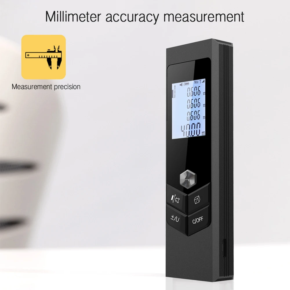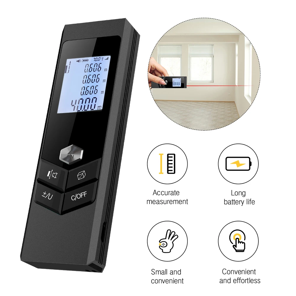 -- Диапазон измерения составляет от 0,05 до 40 м. И точность измерения ± 2 (мм). Таким образом, этот лазерный дальномер является более практичным и точным.