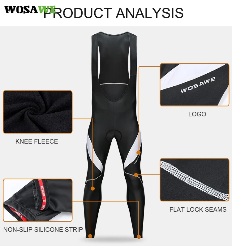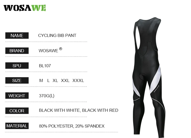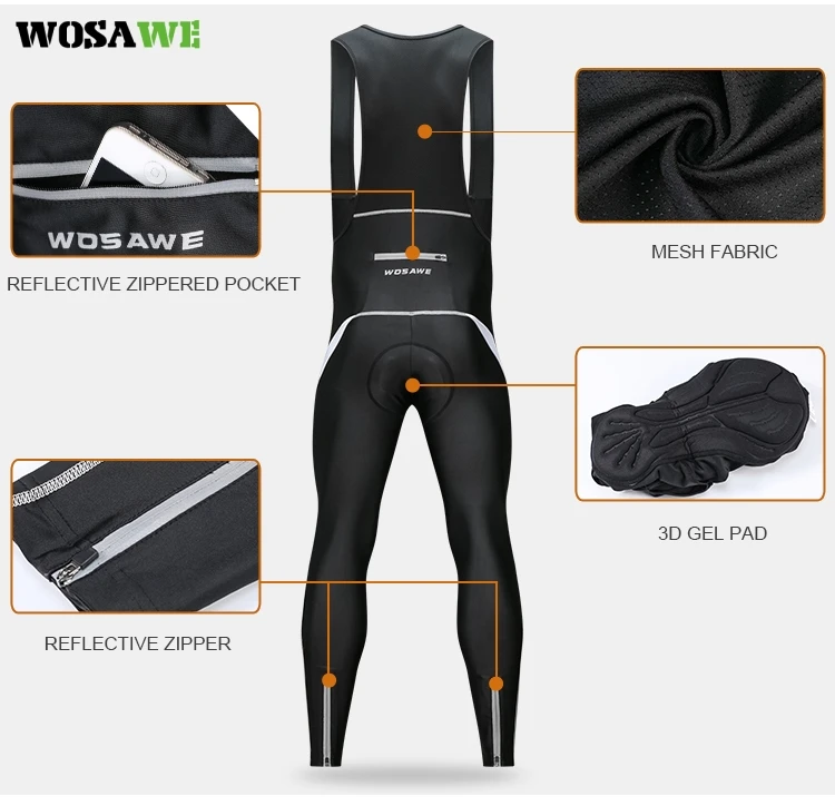 WOSAWE Велоспорт Bib колготки имеет эргономичный дизайн с флисовой ткани, предназначен для уменьшения трения и улучшения посадки и сделать тепло для повышения производительности.