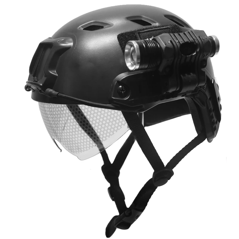 Тактический Быстрый Шлем тактический шлем высокий светильник фонарь приспособление флэш-светильник Тактический шлем РуководствоМатериал: нейлоновый пластикФункция: Пять передач можно регулироватьПодходит для фонарика: фонарь диаметр корпуса 25,4 ммРегулируемый фонарь с пятизубчатой передачей диаметром 25 мм.