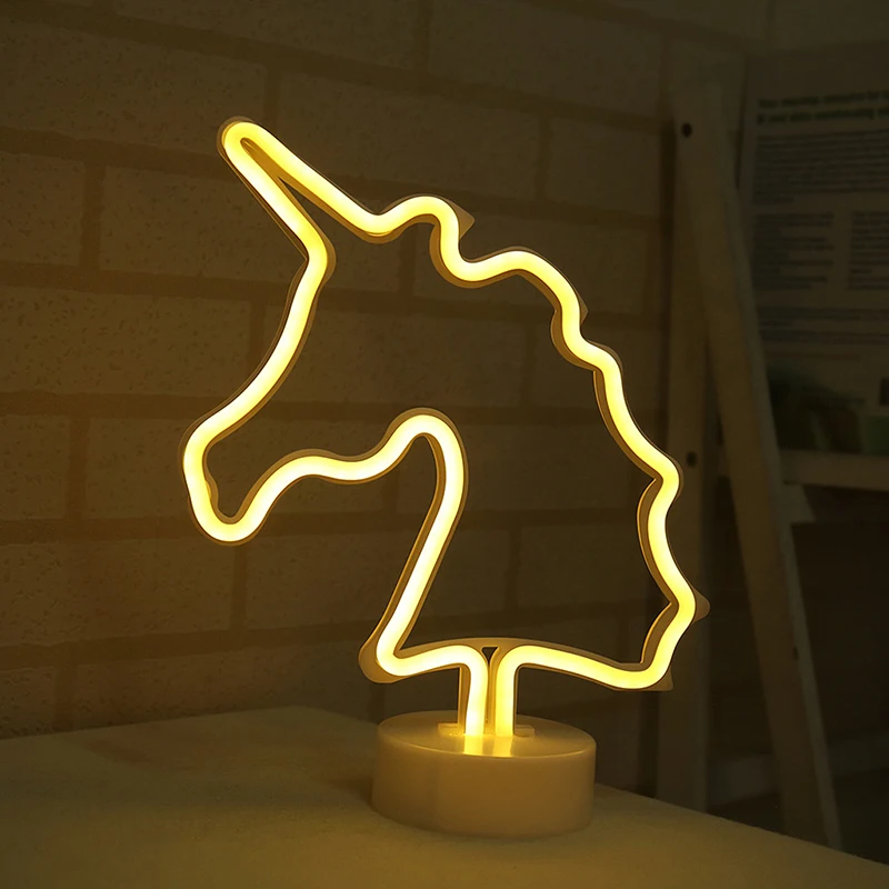 Неоновая вывеска, светодиодная лампа ins, украшение в виде единорога, Детская прикроватная тумбочка, Ночной светильник, Декор, светильник ing